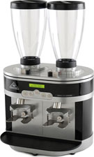 Expobar 30 Twin Automatisk och snabb espressokvarn med två bönbehållare och två kvarnar. Varje portion är di-rektmald. Programmering för malning till enkel och dubbel espresso. Kvarnen startar automatiskt när man sätter bajonetten i uttaget. Malning tar endast 2 sekunder för en enkel espresso. Inbyggd kylfl äkt för varje kvarn. Bönbehållarnas volym är ca 750 gram var. Utförande i silver med svart. Ingen tamper på kvarn Specifikationer Effekt: 1-fas: 850 W Storlek maskin: Bredd: 370 Höjd: 560 Djup: 300 El: 1-fas |