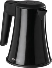 kokaren lätt att hålla ren och nickelfri. Sladdlös vattenkokare, 1,2 liter. Botten med täckt element - lätt att hålla ren och nickelfri. 360º kontaktplatta med praktisk sladdvinda. Automatisk avstängning samt torrkokningsskydd. Vattennivåmätare Färg: högblank svart. |